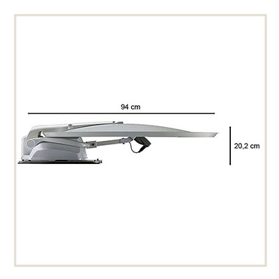 Deze schotelantenne is ingeklapt maar 20,2 cm hoog.